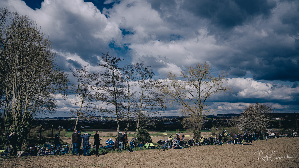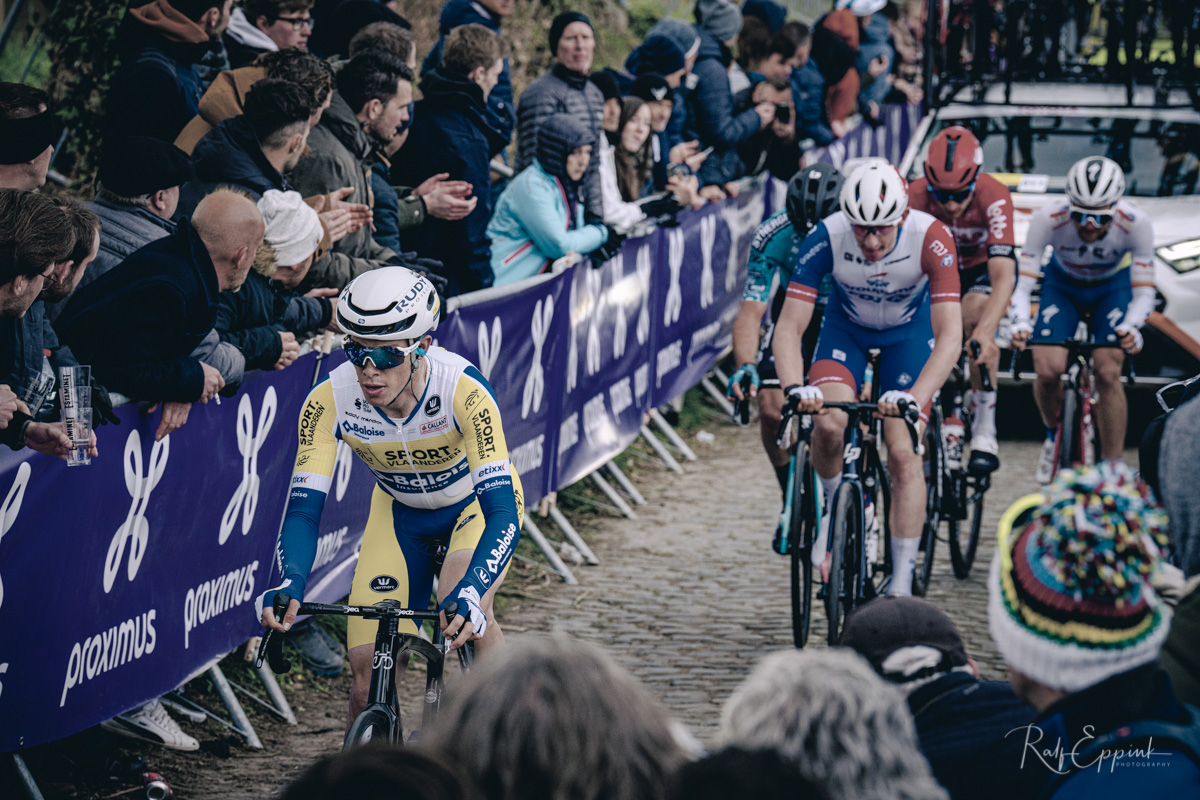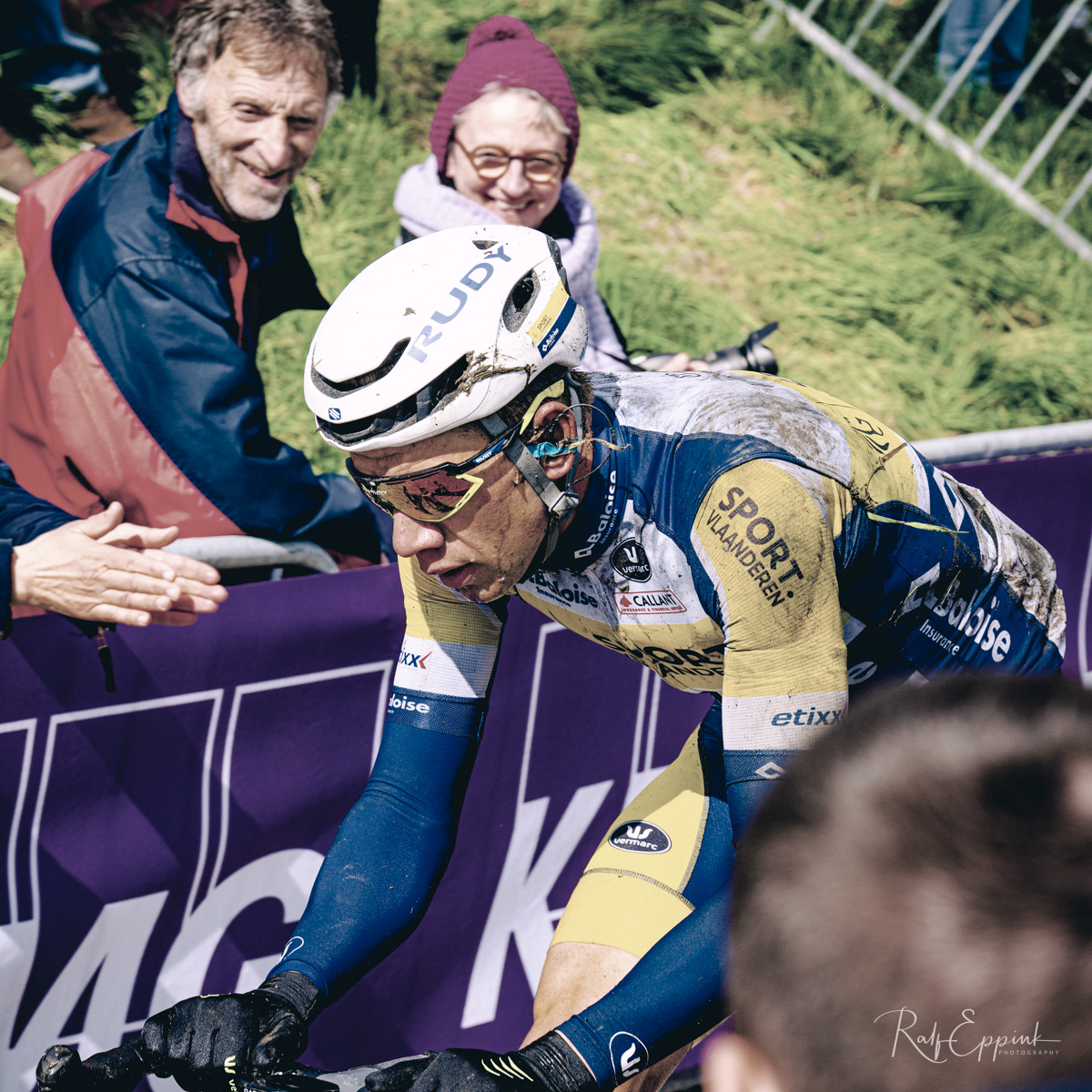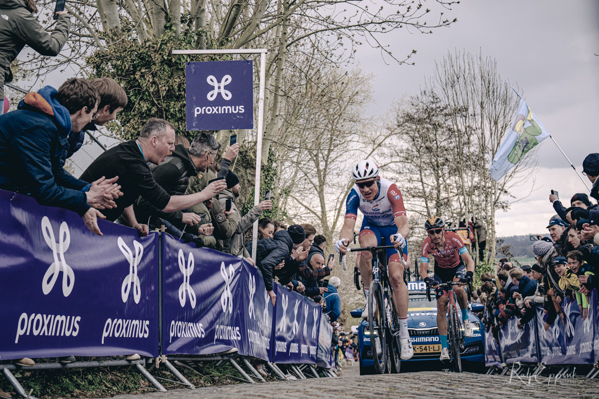 Beim Profirennen stand ich dann tags darauf für meine Fotos am Oude Kwaremont, einer der Renn-entscheidenden Kopfsteinpflaster Anstiege. Seit einigen Jahren wird dieser 2 km lange Hügel mehrfach durch-/überfahren und bildet mit dem Paterberg kurz vor dem Ziel einen Rennabschnitt, an dem nicht selten die Vorentscheidung fällt, wer hier vorne mit fährt hat Chancen auf das Podium wenn nicht gar auf den Sieg.