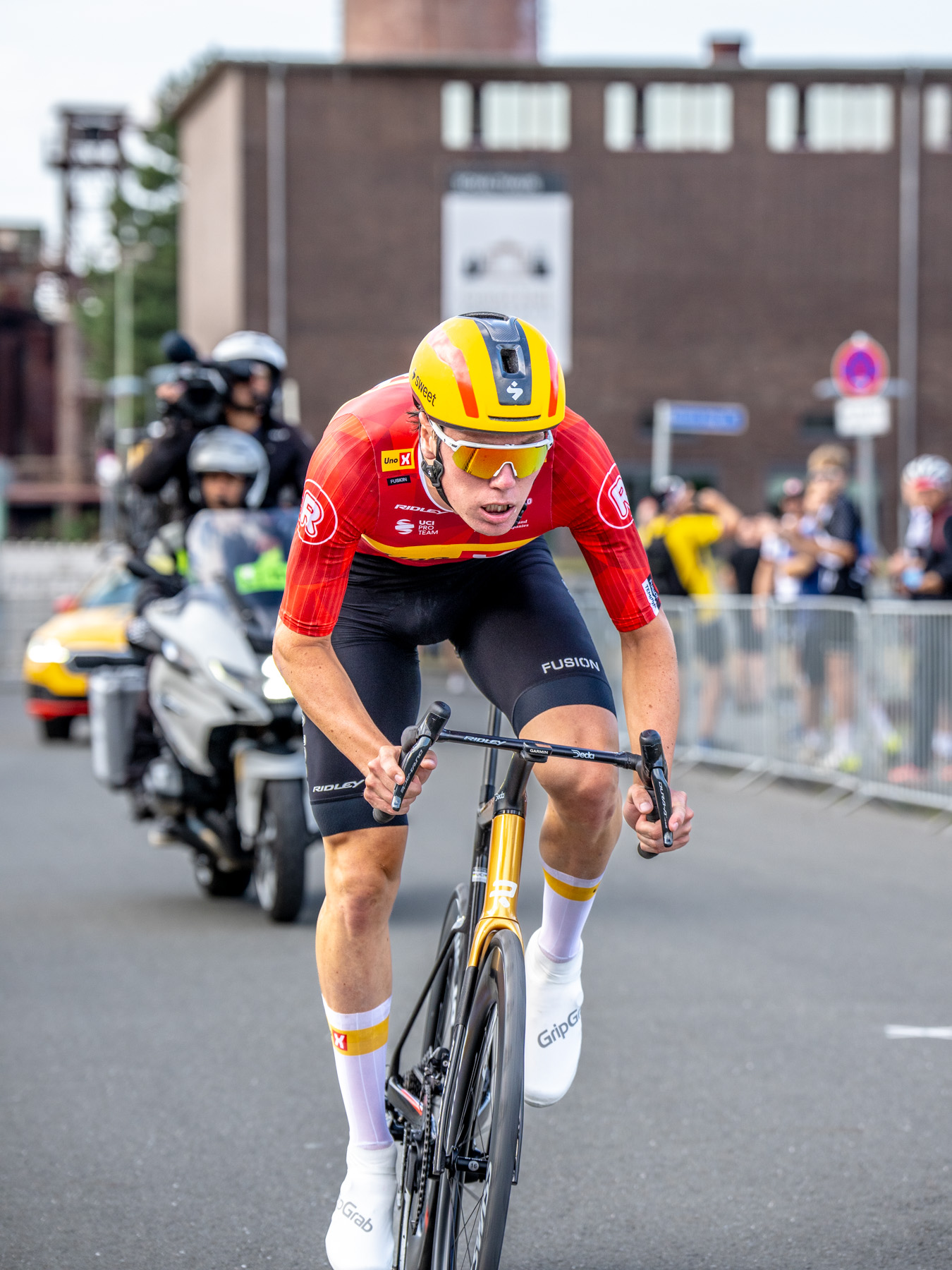 Der Prolog der diesjährigen Deutschland Tour verwandelte die Zeche Zollverein in Essen in ein Festival aus Stahl, Speed und Spannung. Auf nur 3,1 Kilometern wurde alles geboten – enge Kurven, explosive Antritte und ein Fotolicht wie gemacht für Gänsehautmomente.